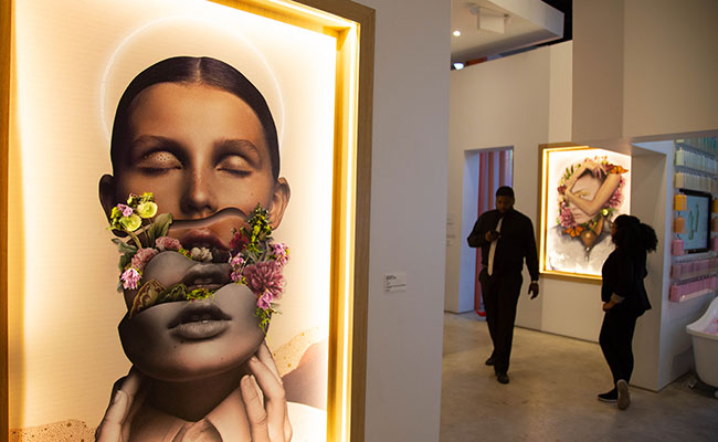 Esta exposición está conformada por una serie de collages digitales intervenidos con pintura, flores vivas y texturas interactivas. Cada una de estas piezas fueron surgiendo con el paso del tiempo, y es que de acuerdo a Manuel «fui combinando ideas, quería algo orgánico para estas obras… le impuse mi propio estilo irreverente y dejé que todo fluyera con cada uno de los elementos con los que contaba en el momento».