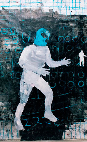 Por su lado, Fausto Amundarain exhibirá un trabajo que se caracteriza por el uso y repetición de gráficas visuales, las cuales son acumuladas en múltiples capas de información, esto a partir de técnicas y materiales como papel, collage, pintura acrílica y serigrafía.