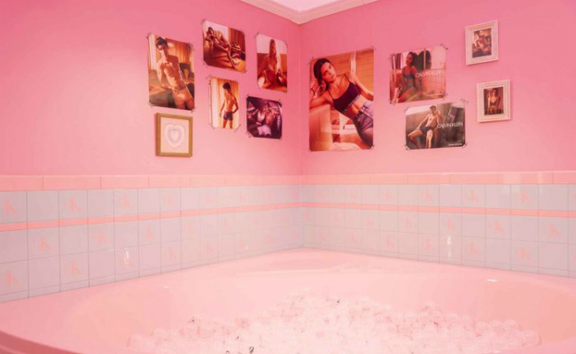 Este diseño se trata de una colaboración de ensueño que se produjo en la casa kitsch con la que todo joven podría soñar, pues está inspirada en los años setenta. La decoración cuenta con un edredón estampado por pequeños bouquets de flores, además, el baño tiene un estilo totalmente millenial con matices rosados y azulejos cuadrados en tonos azules que se contrastan a la perfección. Y, por si fuera poco, tiene una tina con pelotas transparentes haciendo alusión a las burbujas, así como cojines con motivos bordados en punto de cruz.