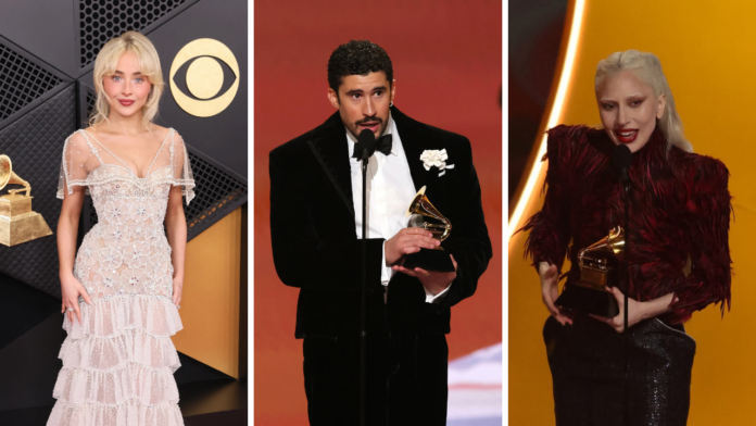 Bad Bunny se convirtió en el primer artista en ganar el Álbum del Año con un disco íntegramente en español por Debí Tirar Más Fotos. En su discurso, visiblemente emocionado, dedicó el premio a los migrantes y lanzó una dura crítica contra las políticas migratorias (ICE) de Estados Unidos.
