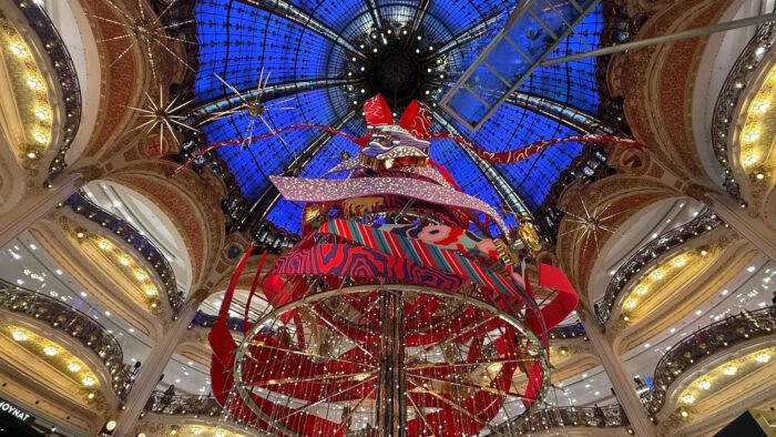 Otro de los árboles más famosos es el que se coloca en las grandes tiendas parisinas de departamentos, Galerías Lafayette, todos los años el árbol se coloca en el centro de la tienda y es admirado por todos. Cada año es adornado con una temática diferente.