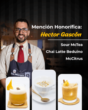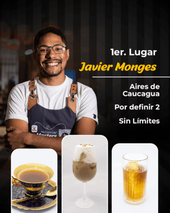El ganador de la primera edición de McCormick Tea Masters Cup fue Javier Monges con sus preparaciones: “Por definir 2” un mocktail inspirado en los sabores de su infancia, sostenido en frutas olvidadas de la gran urbe caraqueña; su tea cocktail “Sin Límites” enfocado en la tendencia de merma cero (0) utilizando frutas pocos comunes que hacen un excelente maridaje con los productos de Infusiones McCormick® y que posteriormente se transforman en comestibles; y su té caliente “Aires de Caucagua” inspirado en sus abuelas originarias de este pueblo cacaotero del Estado Miranda y la bebida caliente que le daban cuando enfermaba.
