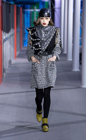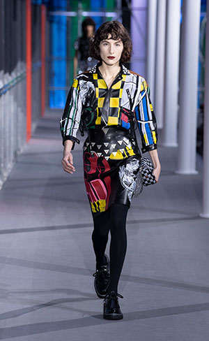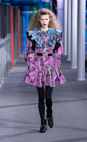 El desfile tuvo lugar en el Museo Du Louvre, en París, en donde se realizó una replica del Centre Pompidou, en el que los colores y la estructura high-tech tubular fueron una fuente de inspiración para Nicola Ghesquière, director creativo de la marca francesa, y que,además, fueron los principales protagonistas del desfile.