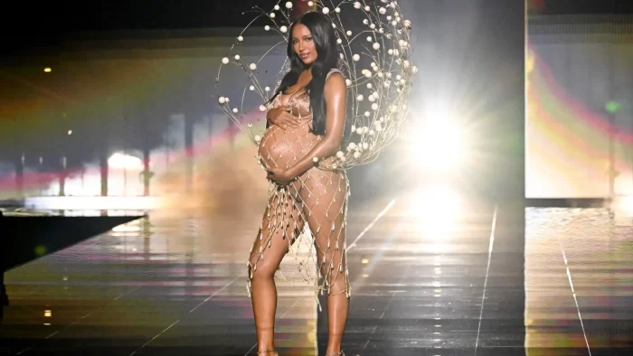 El momento más emotivo y simbólico fue la apertura del desfile a cargo de la icónica supermodelo y ex-Ángel, Jasmine Tookes, quien caminó la pasarela mostrando su avanzado embarazo. Este hito no solo marcó el inicio del espectáculo, sino que también fue una poderosa declaración de la marca sobre la celebración de la feminidad en todas sus etapas y formas, alejándose de los estrictos cánones del pasado.