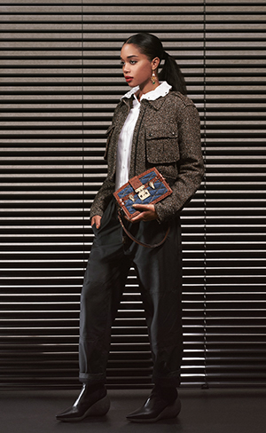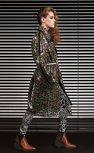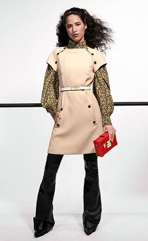 Los diseños, que varían entre vestidos, faldas, carrot jackets, blusas con pussy-bows y algunas camisas en plaid, se entrelazan para contar la historia de quién las porta. Los accesorios se adecuan como un contraste casi camaleónico, respetando los estampados de la misma entrega pero jugando en líneas esculturales.